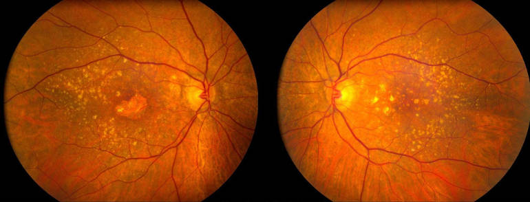 ВМД поражает самый центр сетчатки – макулу, обеспечивающую функциональную сохранность центральной остроты зрения. Заболевание протекает в двух формах: сухой и влажной. Сухая форма протекает менее агрессивно и быстро. Экссудативная форма сопровождается кистовидными отеками сетчатки, развитием новообразованных сосудов с рецидивирующими кровоизлияниями, отслойкой ретинального пигментного эпителия и нейроэпителия..