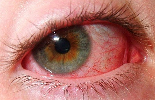 Жалобы : снижение зрения, светобоязнь, слезотечение, покраснение глаза и боль в глазу (т.е. развивается роговичный синдром).